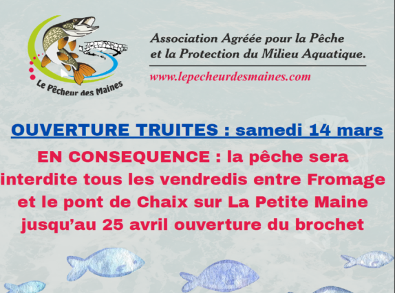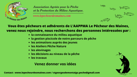 L’association « Le Pêcheur des Maines » est une AAPPMA : Association Agréée pour la Pêche et la Protection du Milieu Aquatique, rattachée à la Fédération Départementale de Pêche de la Vendée.